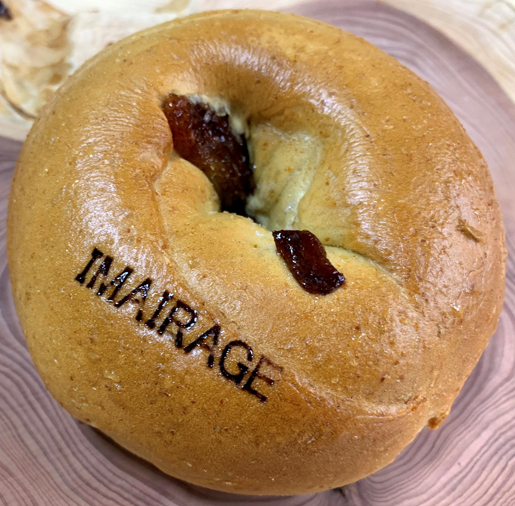 ヒノキ科伊吹の自然木プレート。形が各々あるため実店舗でしか販売しておりません。色々な使い方がありますが、イマイラージュのベーグルを載せておたのしみください。