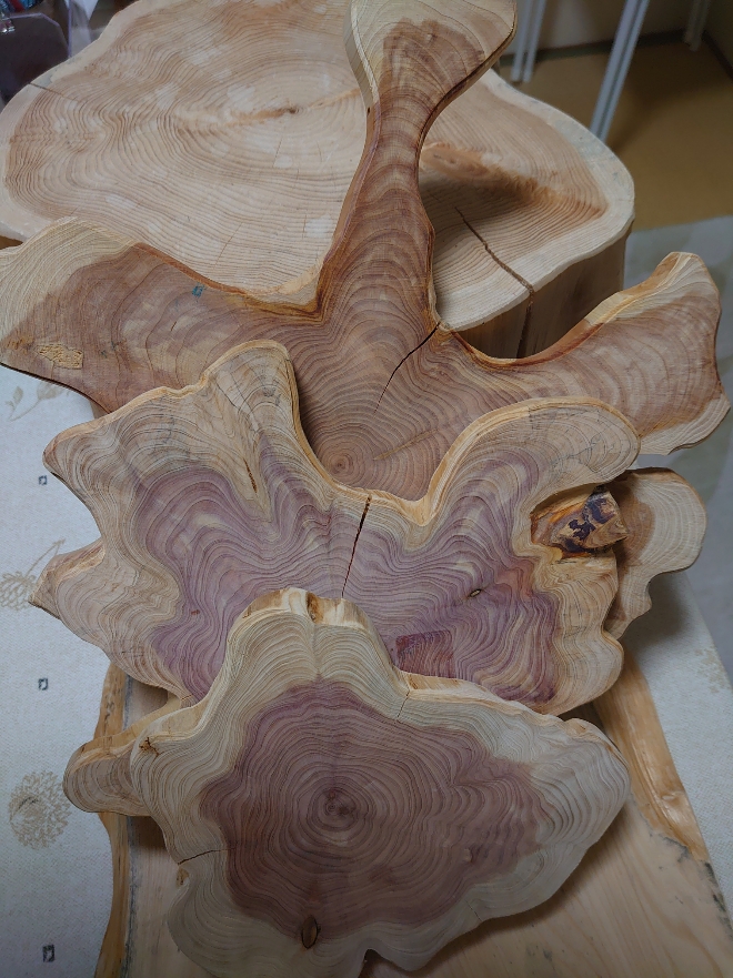 ヒノキ科伊吹の自然木プレート。形が各々あるため実店舗でしか販売しておりません。色々な使い方がありますが、色々な食材を載せておたのしみください。